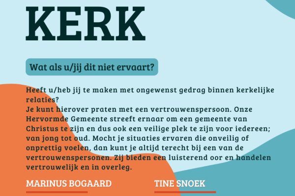 In het document op deze pagina is te lezen hoe we als Hervormde gemeente invulling geven aan het thema Veilige Kerk en stellen de vertrouwenspersonen zich voor.